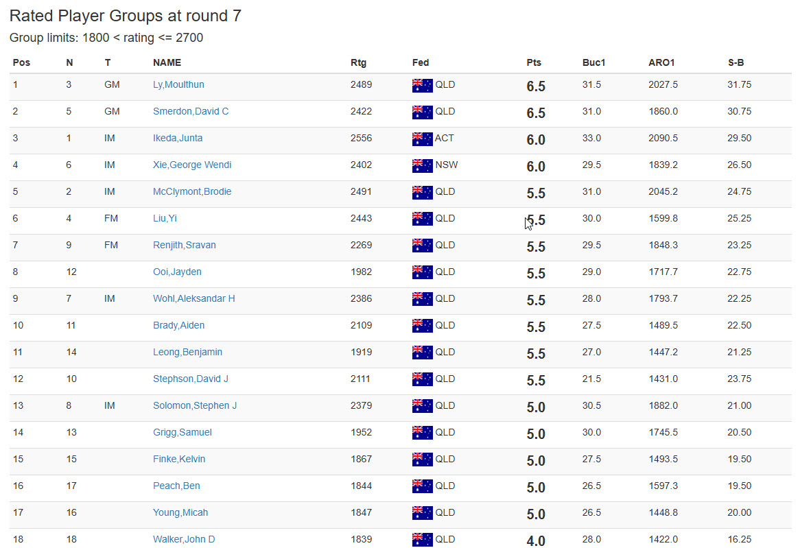 The overall winners with a tied score of 6.5 out of 7 were GM Moulthun Ly and GM David C Smerdon who fought through the final round but came out a draw to close the tournament.