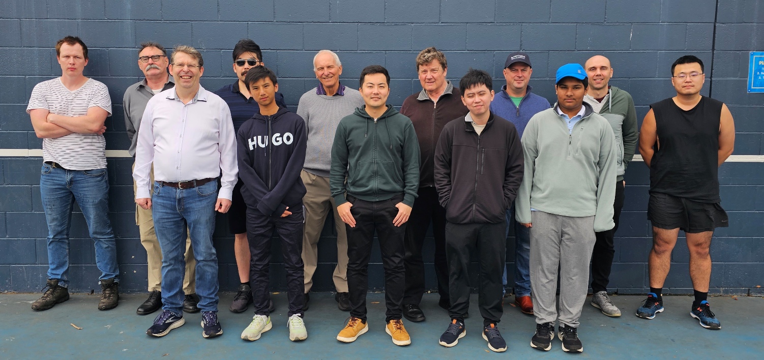 Pictured Below (Left to Right): IM Brodie McClymont, FA David Esmonde, Toowoomba Chess Club President Ross Mills, IM George Xie, CM Jayden Ooi, FA Graeme Gardiner, IM Junta Ikeda, IM Stephen Solomon, GM Moulthun Ly, Our Major Sponsor Brett Walker from Byron Capital, FM Sravan Renjith, GM Dr. David Smerdon, FM Yi Liu